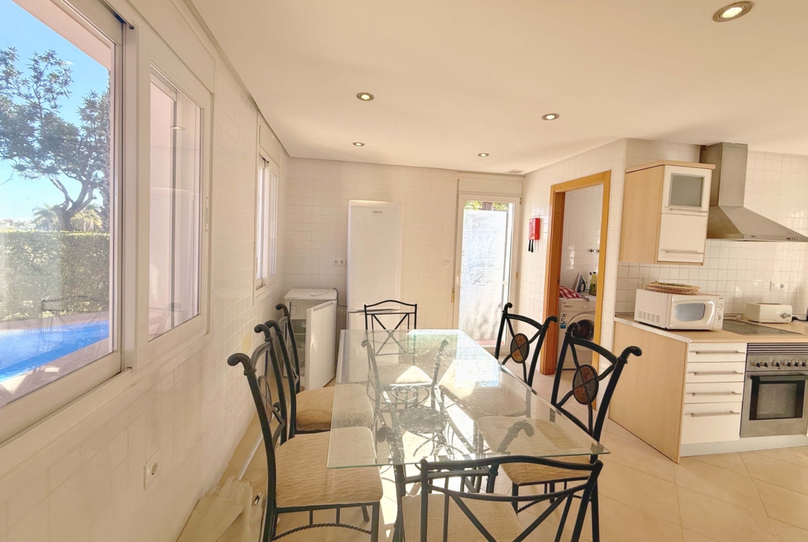 The 4-Bedroom Perdiguera Villa boasts breathtaking views of the lush golf course and offers a private swimming pool to enjoy sunny days in complete privacy.